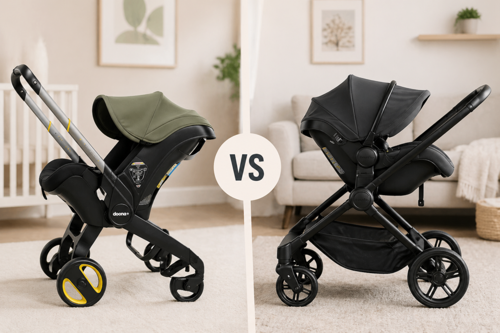 If you’ve been researching infant car seats you’ve almost certainly landed on these two. The Doona and the Evenflo Shyft